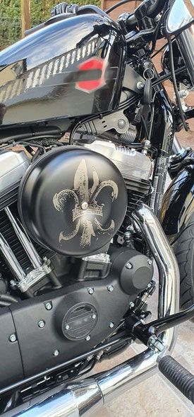 Passend für Harley-Davidson Sportster Modelle mit rundem Luftfiltereckel.